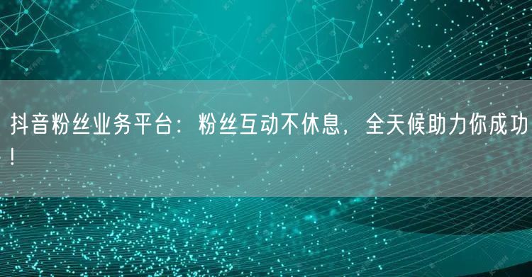 抖音粉丝业务平台是你的得力助手,我们为你提供全天候的助力服务,让粉丝互动不休息!加入我们,让你的抖音之路更加顺畅,实现个人和企业的价值最大化!